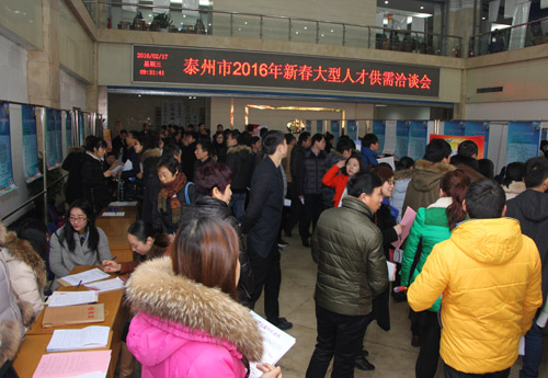 2月17日,泰州市人才市場(chǎng)舉辦了“泰州市2016年新春大型人才供需洽談會(huì)”,吸引了揚(yáng)子江藥業(yè)集團(tuán)、中丹集團(tuán)、可勝科技、樂(lè)葉光伏、罡陽(yáng)股份等180家多知名企業(yè)進(jìn)場(chǎng)招聘,涉及機(jī)械、電子、生物、醫(yī)藥、化工、金融、服務(wù)等各個(gè)產(chǎn)業(yè),需求各類人才6032人,現(xiàn)場(chǎng)接受各類求職簡(jiǎn)歷4217份,5300余人進(jìn)場(chǎng)求職,現(xiàn)場(chǎng)達(dá)成就業(yè)意向1265人。