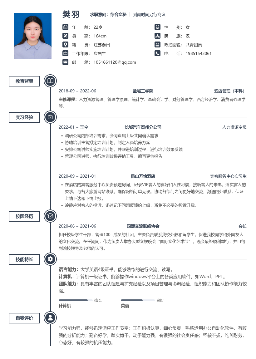 期望職位:人事/行政/后勤